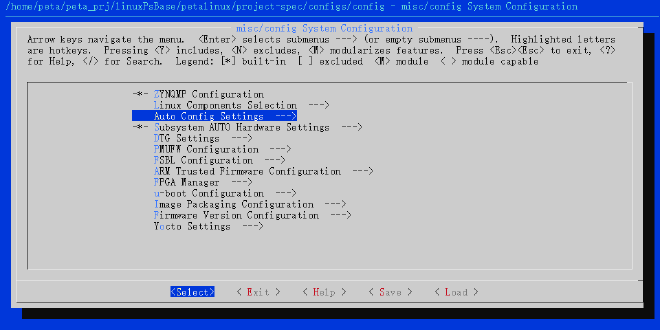 - 使用“petalinux-config”命令加上“–get-hw-description”参数配置 petalinux 工程的硬件信息,“–get-hw-description”参数后面我们硬件描述文件(xsa文件)所在的路径,也就是步骤 1 中创建的路径,注意:硬件信息目录(当前就是“../hardware/”)里必项有且只有一个xsa文件。