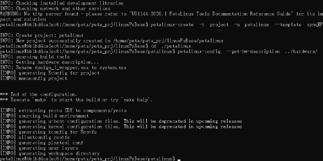 注:如果没有设置离线编译,该步骤必项保证ubuntu系统可以连接网络,petalinux需要从github上下载一些源代码。