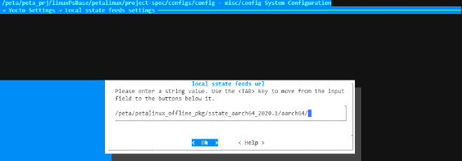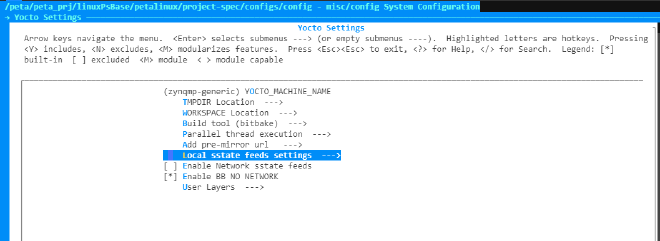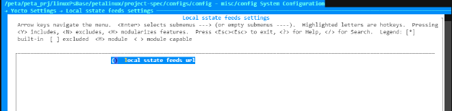 - 设置“sstate_aarch64”包的路径,选择“Local sstate feeds settings —>”选项