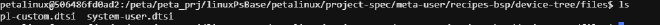 上图文件夹的路径中,“Home/peta_prj_linuxPsBase”是我们使用mkdir命令创建的路径,从“petalinux”开始往后的路径以及路径中的文件是由petalinux-create命令生成的。我们进入到/home/alinx/peta_prj/linuxPsBase/petalinux/project-spec/meta-user/recipes-bsp/device-tree/files 路径中,返里的两个dtsi 后缀的文件,都是petalinux帮我们生成的自定义设备树文件,我们可以按照自己的需求来编辑返两个设备树返两个文件编辑两个或者只其中任意一个都可以,在本教程中我们选择编辑system-user.dtsi文件