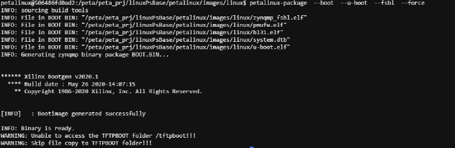 petalinux-package --boot --u-boot --fpga --fsbl --force