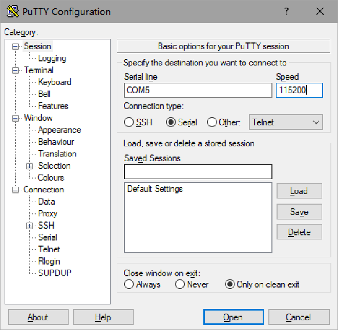 - 连接串口线到开发板的“PS_UART”口上,打开串口调试工具,将板卡上电。