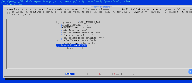 选择< Save >保存配置,然后选择< Exit >选项退出配置界面,编译petalinux工程。