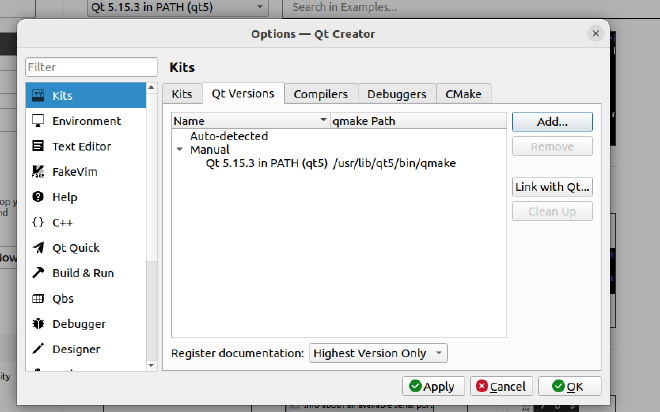 在“Kits”选顷的“Qt Versions”页点击“Add..”。